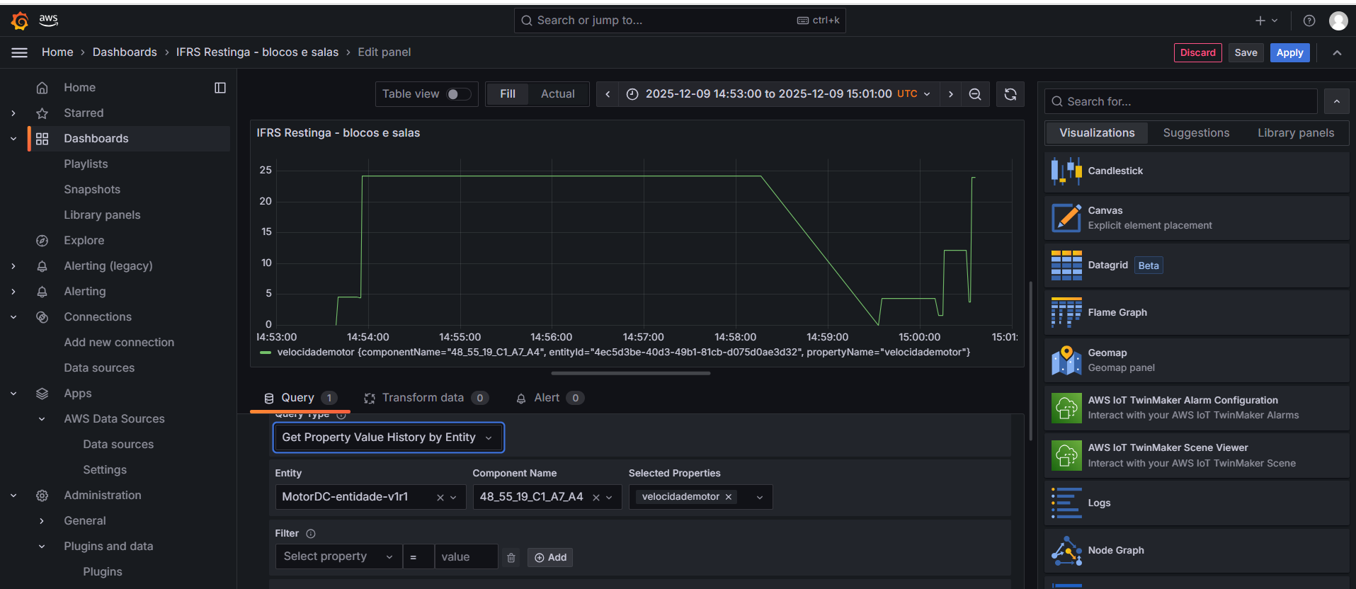 Gêmeos Digitais - Criando com AWS IoT TwinMaker (regra) Gêmeos Digitais - Grafana