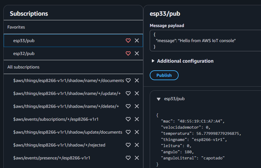 Em nosso cenário configuramos que todas as mensagens do tópico esp33/pub deverão ser enviadas