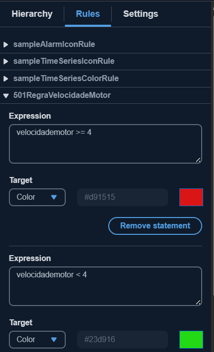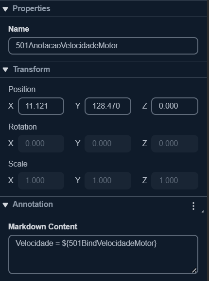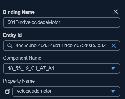uma expressão 'Velocidade = ${501BindVelocidadeMotor}' é necessário configurar um binding