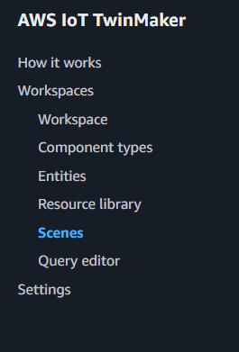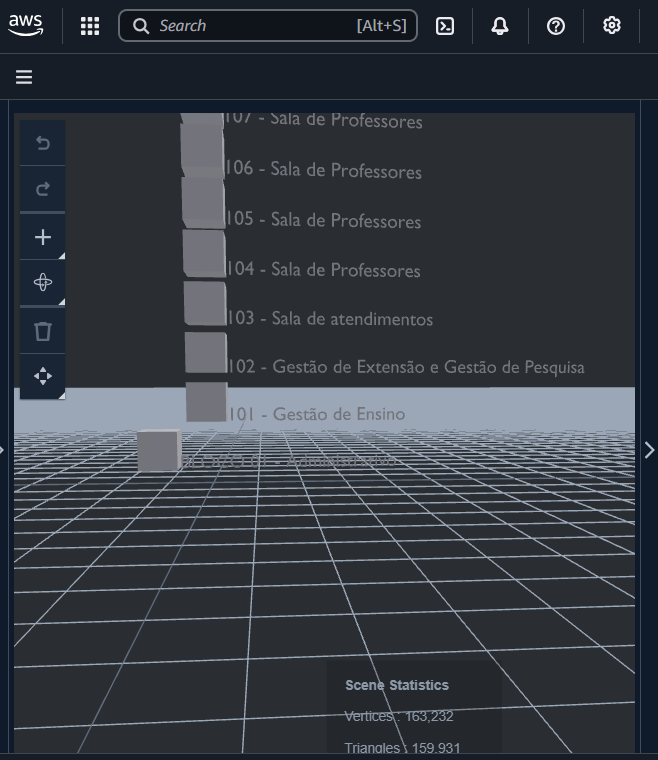 de como o modelo 3D será visto a partir de um eixo de coordenadas x,y,z. O serviço AWS IoT TwinMaker possibilita a criação de