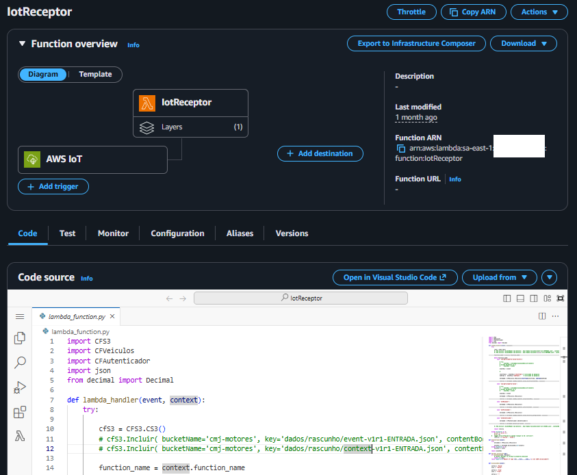 É esta a função Lambda que será executada quando uma solicitação for relizada pelo Gêmeo Digital.