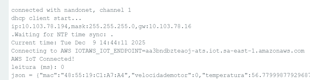Na imagem vemos as mensagens, em tempo real, que o device está enviando.